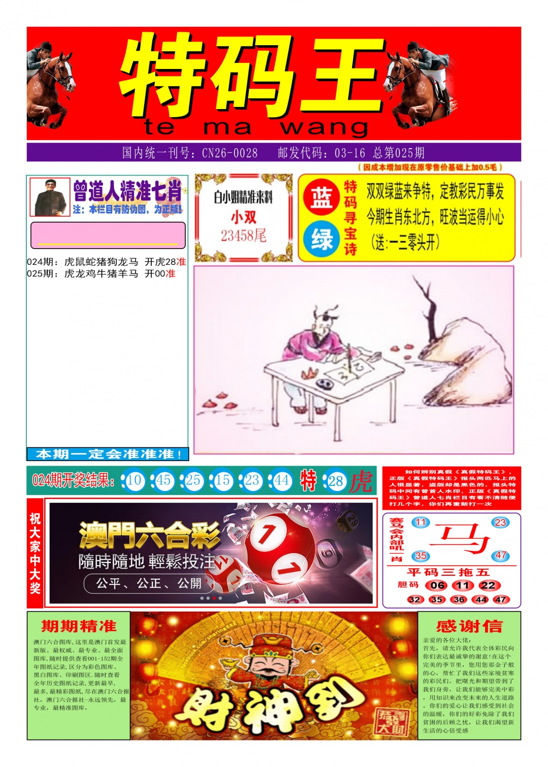026期:平特三肖连【???】开?00准